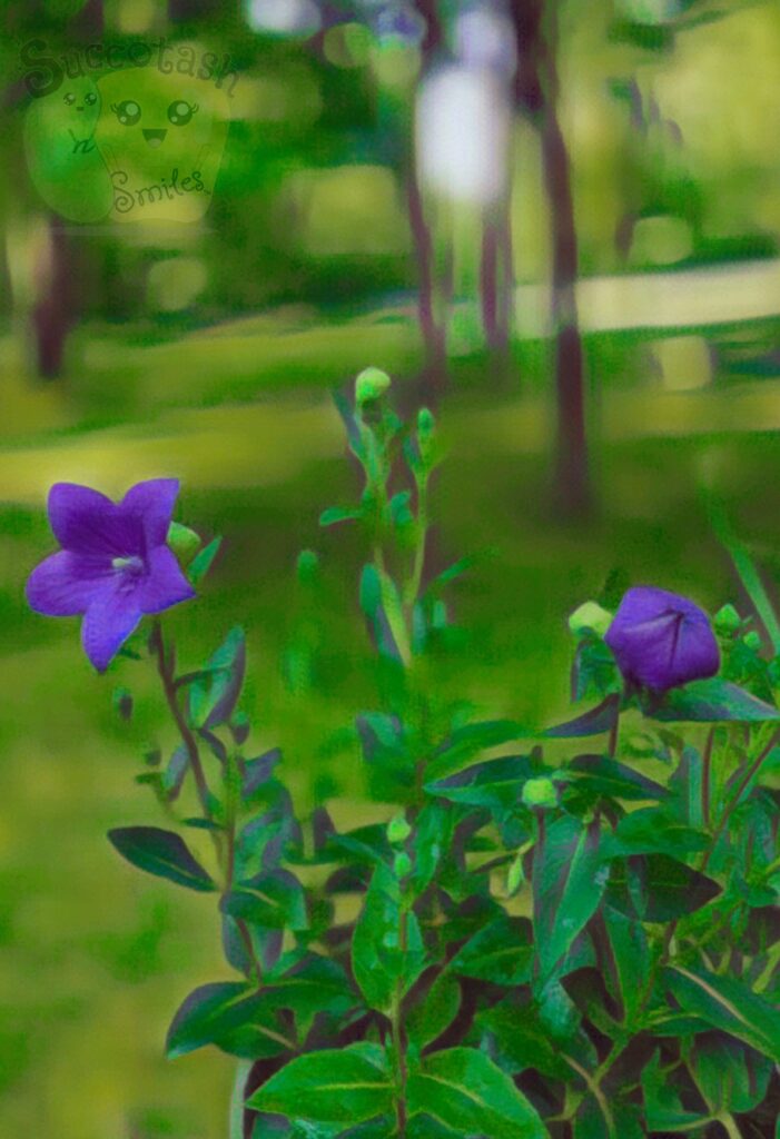 2 balloon flowers, one in full bloom, one about to open.